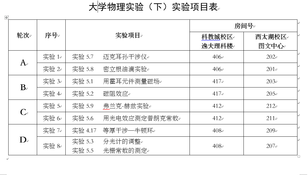 2025-2026-1大学物理实验(下)科教城校区课表
